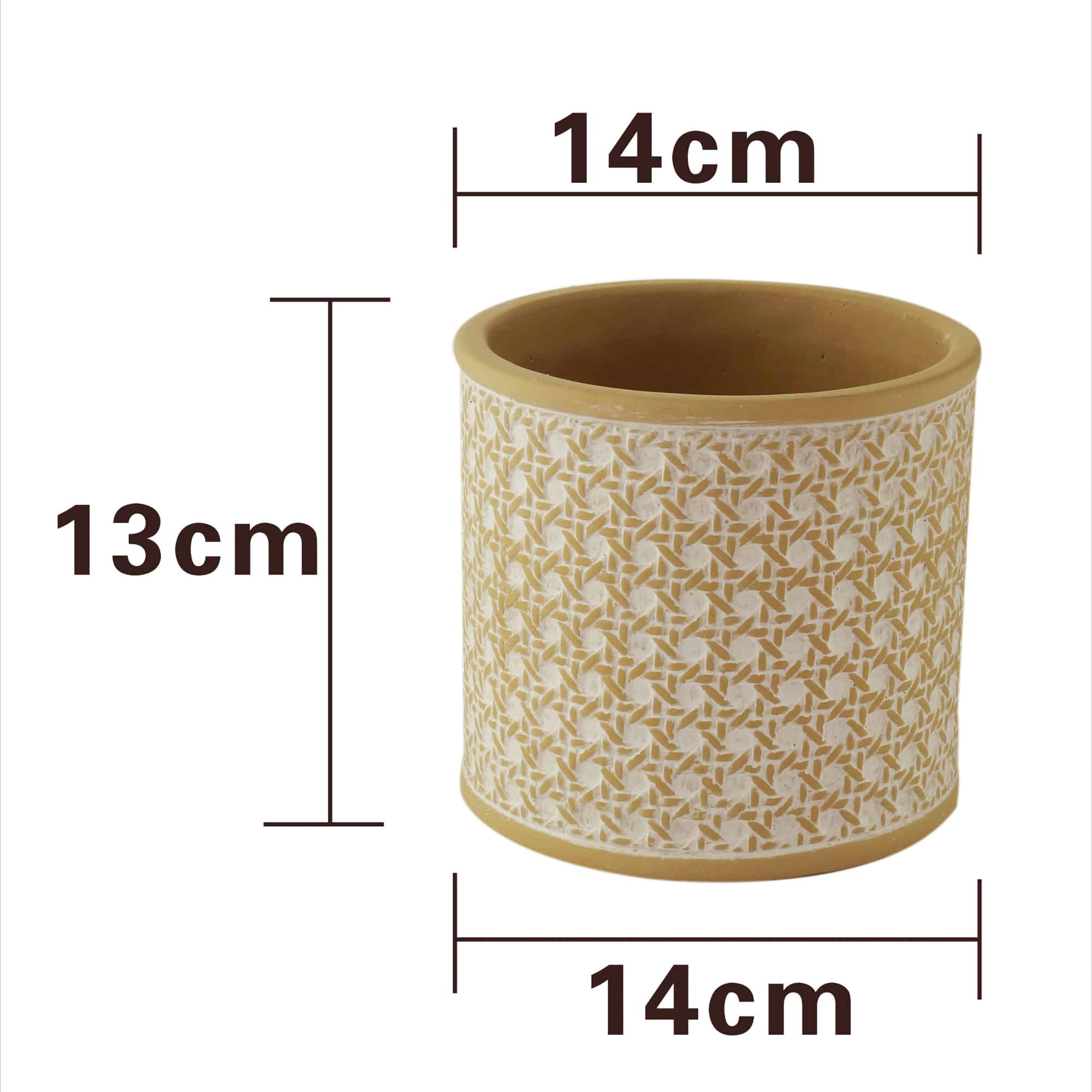 Lindo cachepô de cerâmica, no tom bege. A cerâmica é toda trabalhada em alto e baixo relevo, remetendo a cachepô feito de palhinha trançada. Recebe pintura tipo pátina branca, onde as ranhuras da peça ficam esbranquiçadas. Dá um toque natural a peça tanto a cor como a trama tipo trama de palhinha. FAcilmente de combinar com vários tons na decoração, assim como em diversos ambientes, residenciais ou comerciais. Acomoda bem vasos grandes de plantas naturais, desidratadas ou artificiais. Linda peça decorativa de fácil limpeza e manutenção. Para proteger os móveis, a peça possui micro pézinhos de eva. Pode ser utillizada sozinha ou em composição de outra de mesmo modelo, mas menor, o que dá movimentos a composiação. 7908053445102.